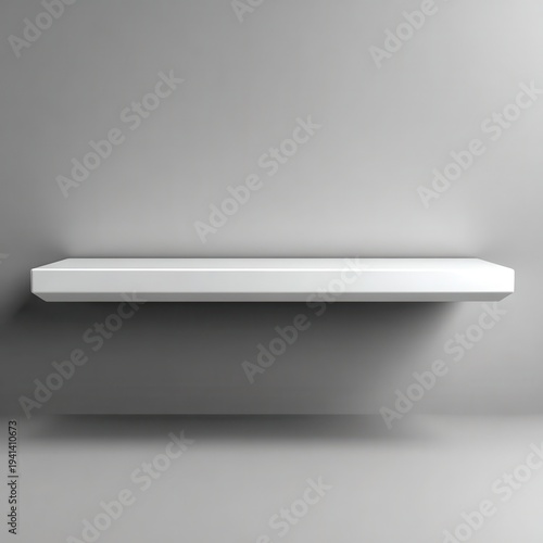 Empty White Shelf on Gray Wall, Minimalist Interior Design Mockup