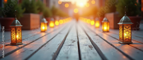 ramadan, eid, wooden, white, floor, lantern, glow, arabic, islamic, festival, day, city, light, blurred, street, bokeh, background, table, festive, decor, spirituality, religion, gold, illumination, traditional, middle east, celebration, vintage, culture, ambience, symbol, muslim, nightscape, holy, month, fasting, soft light, decorative, vibe, glowing, outdoors, warm tones, spiritual, sacred, template, blank, copy space, no people