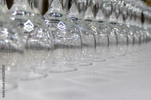 Empty wine glasses row elegant table setting banquet catering service wedding event professional hospitality