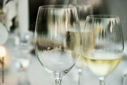 Empty wineglass and glass with white wine