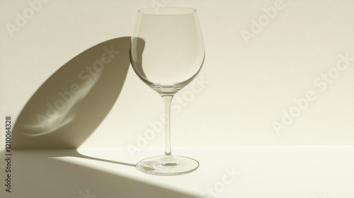 wine glass, empty, shadow, sunlight, background, beige, minimalist, design, banner, website, glasses, wine, drink, alcohol, beverage, elegant, simple, clean, pure, clear, transparent, light, sun, ray, style, modern, white, cream, texture, surface, still, life, photo, image, template, illustration, concept, abstract, food, object, scene, studio