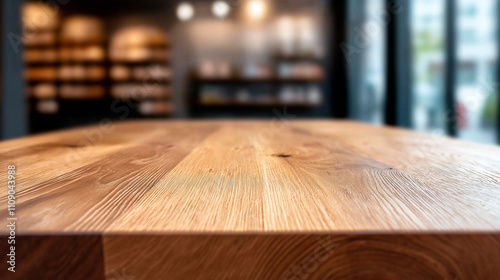 Empty wood table top blurred background for product display