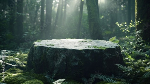 Enchanted Forest: Serene Stump in Sunlit Grove