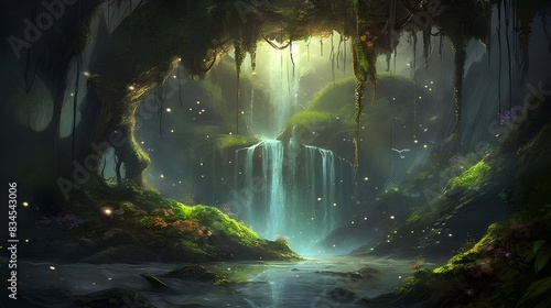 enchanted, forest, waterfall, mystical, serene, nature, lush, greenery, light, aethereal, magic, fairy tale, peaceful, hidden, cave, glowing, sparkling, tranquil, dreamlike, vibrant, untouched, paradise, water, secret, fantasy, flora, scenic, beauty, wonderland, wilderness, enchanting, magical, oasis, lichterkette, natural, pristine, dreamscape, calmness, verdant, idylli, surreal, aglow, green, tree, fog