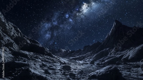 Enchanted Night Sky: Moonlit Shadows on Rocky Landscape