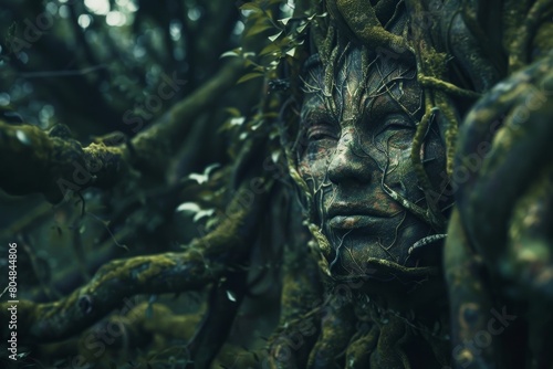 forest, nature, tree, face, whisper, secret, traveler, cinematic, photo, surreal, fantasy, mysterious, eerie, dark, moody, atmospheric, mossy, green, growth, leaf, foliage, lush, enchanting, mystical
