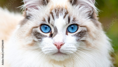 Enchanting Gaze of a Ragdoll Cat: Captivating portrait of a Ragdoll cat, eyes shimmering like sapphire jewels.