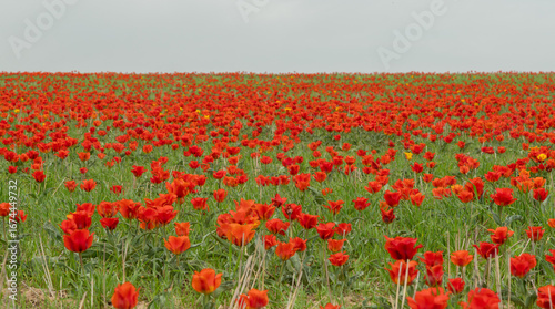tulip, flower field, red flower, nature, landscape, spring, bloom, blossom, wildflower, flora, flower petals, garden, seasonal, countryside, wilderness, scenic, natural, wild, meadow, rural, colourful, floral, environment, beauty, eco, untouched, travel, blooming, vegetation, panoramic, horizon, cloudy sky, scenic view, wild nature, exploration, environmental protection, earth