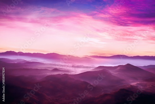 mountain, range, landscape, nature, sky, sunrise, sunset, purple, pink, light, soft, atmospheric, haze, fog, mist, serene, tranquil, beauty, scenic, vista, horizon, twilight, dusk, morning, evening