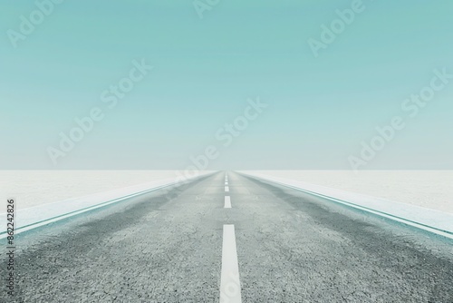 Endless open road extending into the horizon under a clear blue sky, symbolizing freedom, journey, and adventure.