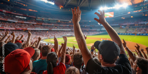 baseball, fan, stadium, cheering, crowd, sport, celebration, live, game, energetic, event, excitement, team, audience, light, spectator, competition, player, athletic, entertainment, match, fun, enjoyment, lively, arena, summer, sportsmanship, ballpark, vibrant, oneness, sporting event