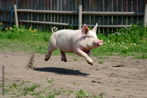 baby pig, sprinting, farmyard, lively, dust, greenery, playful, energetic, animal, countryside, pig, action, dynamic, outdoors, nature, farm animal, cute, joy, running, speed, vitality, agriculture, rural, motion, barnyard, farm animal, freedom, farming, youthful