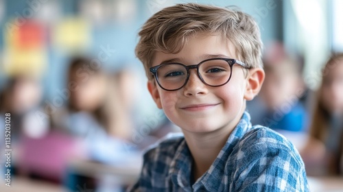 Engaging Image of a Cute Boy Participating in a Lesson at School, Perfect for Educational Content and Classroom Decor