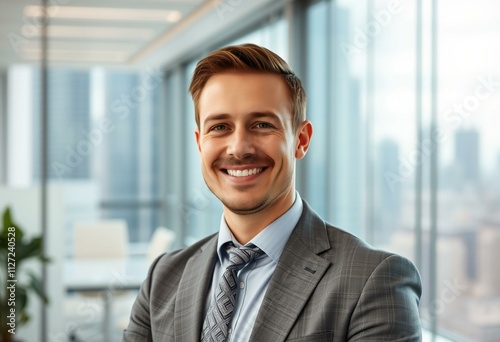 waist, angle, modern, attaching, professional, innovative, human, confident, outfit, smile, background, slimmer, patterned, people, body, view, engineer, warm, attire, office, posture, city landscape, portrait, minimalist, standing