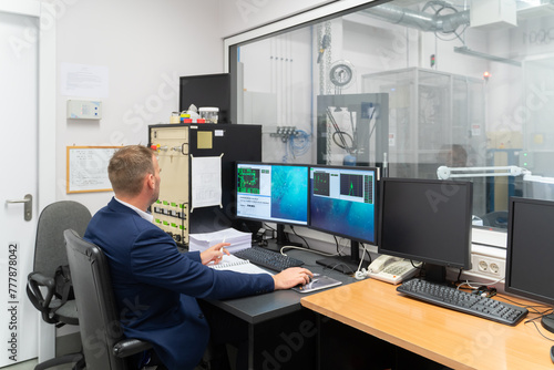 tied-up, computer, copy space, desk, engineer, engineering, equipment, experiment, glasses, indoor, indoor, laboratory, laboratory, modern, monitor, nuclear, research, room, science, scientific, scientist, space, tech, technology, using, working, workplace, workspace