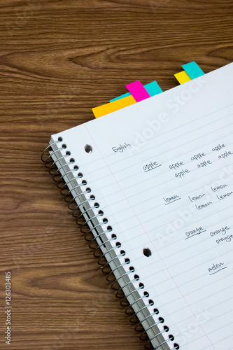 english, bilingual, book, classroom, colours, course, culture, dictionary, education, exam, foreign, global, international, cognition, language, learn, learning, lesson, note, notebook, pen, crayons, quiz, school, student, study, teaching, text, translate, translation, word, earth, write