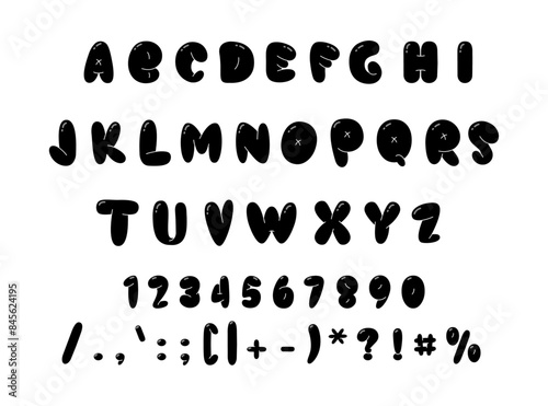 English letters, numbers and special characters fonts. Vector isolated set of ABC bubble balloons, retro decoration for typography. Typeface with inflated effect, black abstract symbols