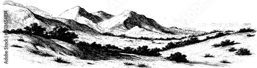 sand, dune, ridge, landscape, vegetation, engraved, illustration, mountain, nature, terrain, desert, hill, engraving, black, white, monochrome, art, drawing, classic, style, line, scenic, wilderness, shrub, arid, environment, topography, vista, natural, scene, earth, formation, tranquil, barren, contour, vignetting, design, print, contrast, texture, artistic, vintage