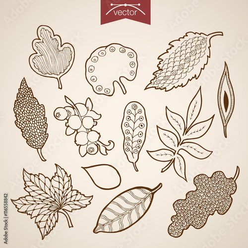 Engraving vintage hand drawn vector leaves Sketch leaf herbarium