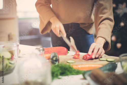 female, adult, bodycare, body part, care, closeup, dinner, domestic life, food, hand, healthy eating, healthy lifestyle, home, house, indoor, kitchen, lifestyle, lunch, one person, people, salad, tomatoes, vegetable, well-being, woman, young, christmas, new year, celebration, christmas tree