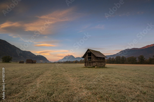 Ennstaler Heustadl, der Grimming im Hintergrund
