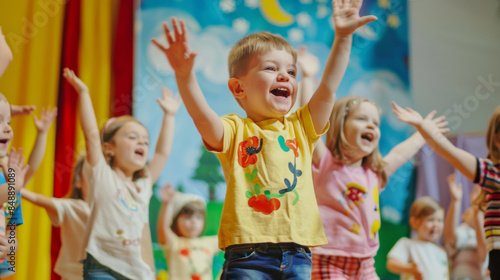 enthusiastic, children, stage, smile, performing, joyful, colourful, whimsical, audience, fun, cheerful, children, lively, playful, event, happiness, celebration, vibrant, energetic, performance, expressive, joy, excited, cute, young, festival, animation, delightful, youth, animated, entertainment, dynamic, upbeat, childhood, creative, group, excitement, spirited