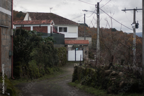 house, building, home, architecture, old, city, sky, street, village, bungalow, road, panorama, blue, travel, landscape, town, green, orense, orense, galicia, spain