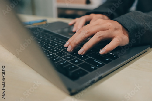 Entrepreneur Asian businessman and businesswoman discussing new business project in tablet in modern Meeting In Modern Office, Asian business casual concept.