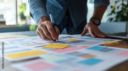 Entrepreneur reviewing a business plan with a focus on company milestones and goals Business plan presentation