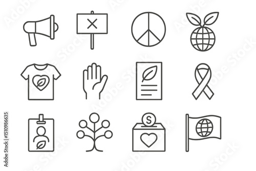 environmental, awareness, icon, peace, sustainability, nature, ecology, conservation, earth, recycling, green, symbol, megaphone, signs, globe, shirt, hand, document, ribbon, clipboard, tree, donation, nubes, flag, renewable, graphic, climate, advocacy, support, movement
