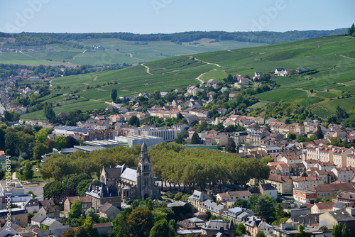 Epernay cityscape seen from a hot air balloon, France / 気球から見たエペルネーの街並み フランス