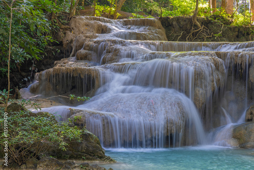 Erawan Waterfall in the rainforest in north of Kanchanaburi, Thailand