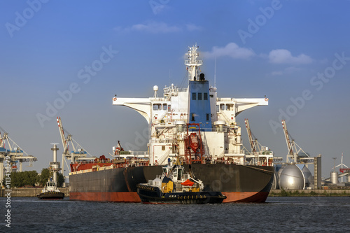 Erzfrachter beim Einlaufen in Hamburg