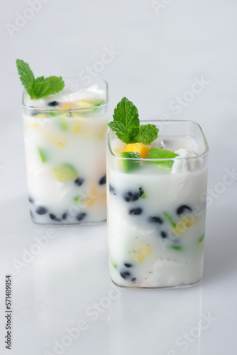Es Buah or Sop Buah is Mixed Fruit and Jelly with Coconut Water Served with Shaved Ice and Condensed Milk. Es Campur.