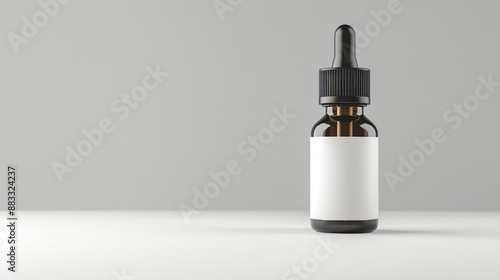 Essential oil bottle with blank label, clean background, mockup for the concept