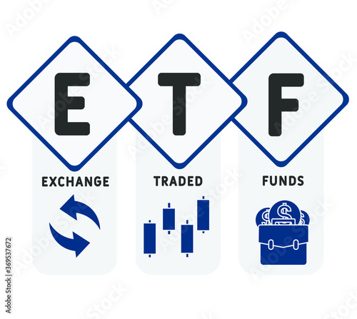 ETF - Exchange Traded Funds. business concept background. vector illustration concept with keywords and icons. lettering illustration with icons for web banner, flyer, landing page, presentation