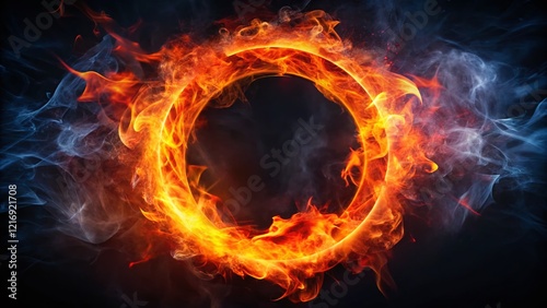 Ethereal Black Ring of Fire: Double Exposure Stock Photo
