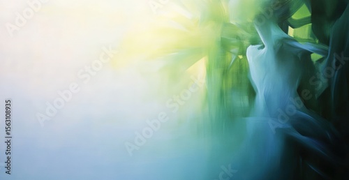 Ethereal green blue abstract background with sunlight and organic flowing shapes