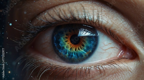 aethereal, illustration, human, eye, iris, revealing, galaxy, reflecting, concept, universal, vision, inner, insight, beauty, macro, pupil, face, woman, look, blue, eye, closeup, eyeball, eyelash, eyelash, view, closeup, eyebrow, skin, looking, people, make-up, brown, see