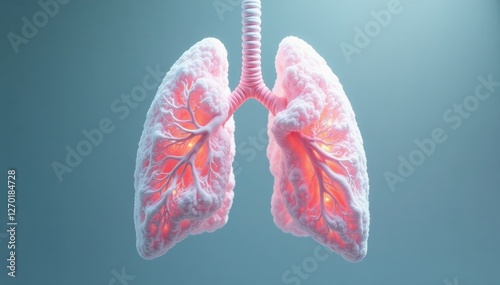 Ethereal representation of lungs formed from frosty white layers with a soft and whispery texture, dreamlike, pale color, frost