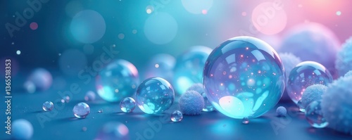 Ethereal soap bubble clusters, soft focus blue backdrop , design, bubble bath