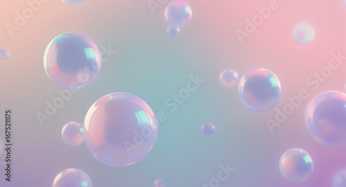 Ethereal Spheres: Iridescent Bubbles Floating in Dreamy Pastel Gradient