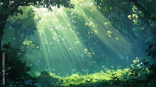Ethereal Sunlight Filtering Through Green Forest Canopy