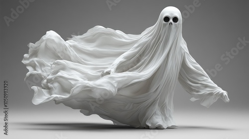 Ethereal white ghost with flowing fabric, evoking mystery and intrigue.