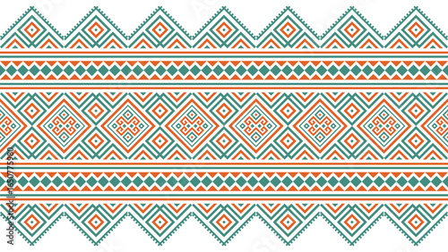Ethnic style seamless tribal pattern. Orange, blue, Mexican, Aztec and Mayan. Background. Vector. Wallpaper. Print. Ethnic geometric.