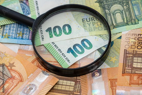 euro, money, cash, financial, bank, finance, pile, investment, business, wealth, success, exchange, banknote, banking, economy, currency, paper, bill, glasses, magnifying, saving, market, concept, europa, profit, magnifier, note, symbol, background, magnify, closeup, european, 100, search, magnifying glass, stack, detail, signs, credit, looking, magnifying glass, idea, lens, conceptual, stock, white, pay, payment, counterfeit