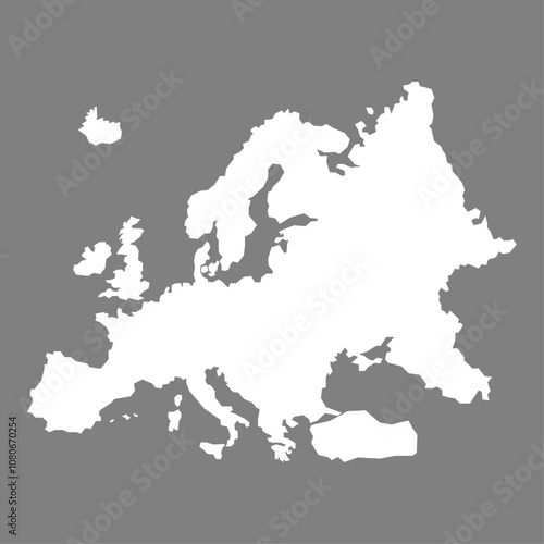 vector, europa, map, outline, simple, silhouette, modern, template, european, continent, union, country, border, euro, geography, rough, overview, edge, basic, grey, background, poster, grey, white, icon, topview, edgy, cartography, territory, atlas, illustration, earth