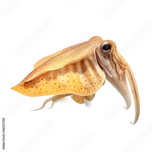 European Cuttlefish Isolated on Transparent or White Background, PNG