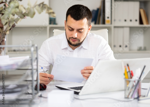 office, paper, secretary, man, accountant, bookkeeper, american, european, caucasian, german, french, 30s, businessman, desk, working, male, professional, indoor, paperwork, person, document, business, computer, entrepreneur, occupation, workplace, paper, job, manager, colleague, planning, expertise, executive, career, inside, desktop, report, office worker, corporate, laptop, sitting, work, one person