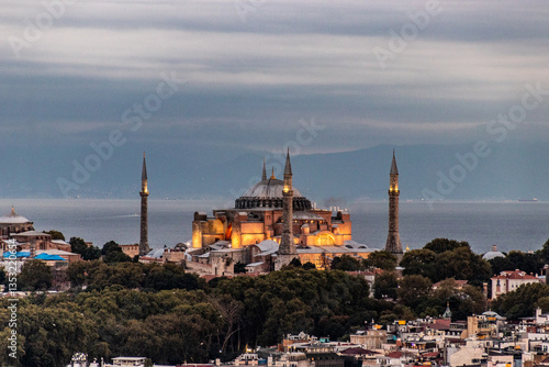Evening view of Hagia Sofia in Istanbul, Turkey